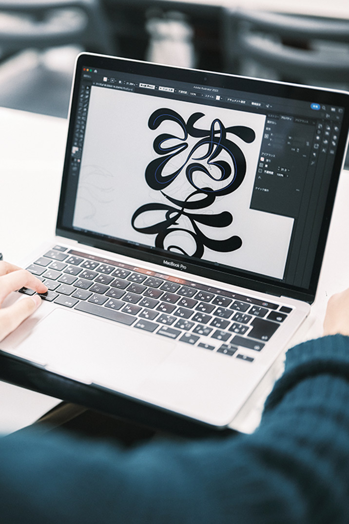 文字の視覚表現を学び、文字を扱うグラフィックのセンスを養います。文字の知識、表現、レイアウトを学びます。ロゴタイプのデザイン、広告ポスターや本の表紙デザインなど、媒体に適した文字デザインの力を養います。